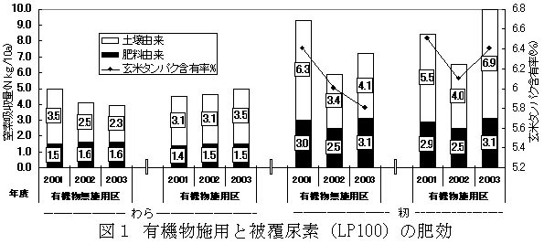 図1 有機物施用と被覆尿素(LP100)の肥効