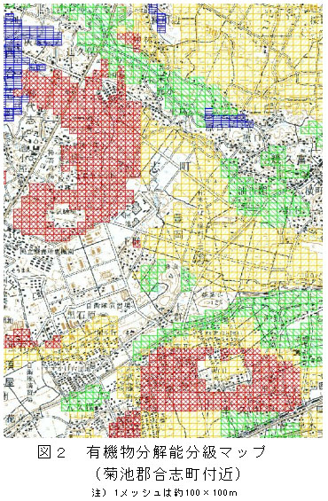 図2 有機物分解能分級マップ(菊池郡合志町付近)