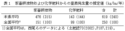 表1 家畜排泄物および化学肥料からの窒素発生量の推定値(kg/ha/年)