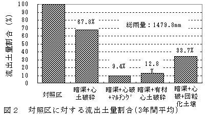 暗渠と心土破砕と団粒化土壌の組合せは赤土流出を約7割低減することができる(図2)。
