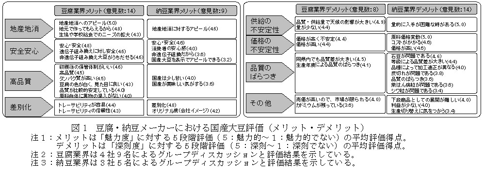 図1 豆腐・納豆メーカーにおける国産大豆評価(メリット・デメリット)