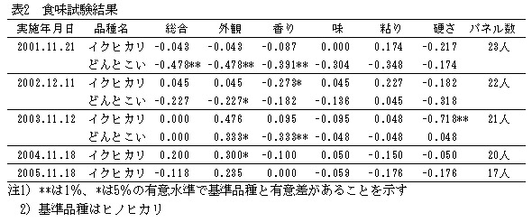 食味は「ヒノヒカリ」並に優れる極良食味である(表2)。