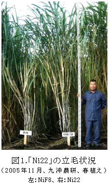 図1 「Ni22」の立毛状況(2005年11月、九沖農研、春植え)