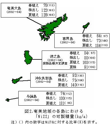 図2 奄美地域の各島における「Ni22」の可製糖量(kg/a)
