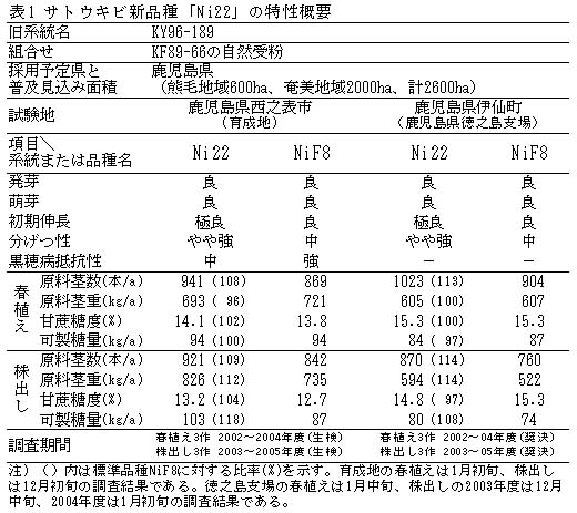 表2 「Ni22」の新植、および株出しの早期収穫における収穫調査結果