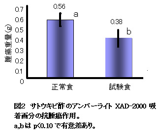図2 サトウキビ酢のアンバーライトXAD-2000吸着画分の抗腫瘍作用。