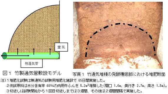 - 家畜ふん尿、無通気堆積発酵施設、竹通気管
