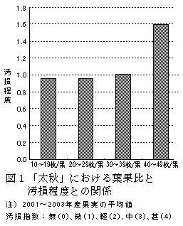 図1 「太秋」における葉果比と汚損程度との関係