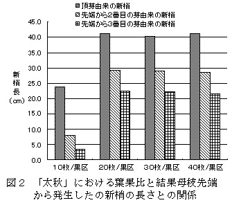 葉果比が小さすぎると結果母枝先端部の新梢伸長が悪くなる(図2)。