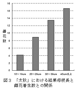 結果母枝が短いほど雌花の着生数は少ない(図3)。