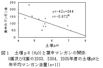 図1 土壌pH(H2O)と葉中マンガンの関係