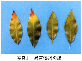 葉中のマンガン含量は年間を通じて大きく変動しないので、夏季に春葉の分析で、異常落葉を予測できる(データ略)。