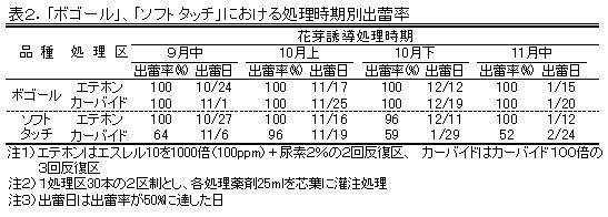 表2 「ボゴール」、「ソフトタッチ」における処理時期別出蕾率