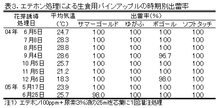 表3 エテホン処理による生食用パインアップルの時期別出蕾率