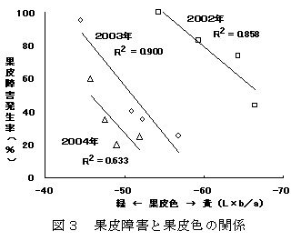 図3 果皮障害と果皮色の関係