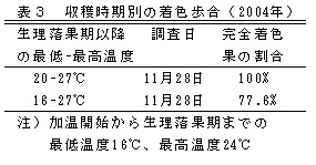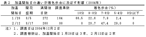 表2 加温開始日の違いが着色歩合に及ぼす影響(2004年)