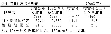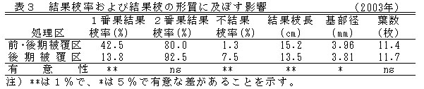表3 結果枝率および結果枝の形質に及ぼす影響(2003年)