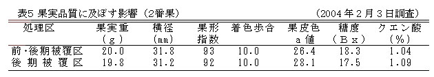 表5 果実品質に及ぼす影響(2番果)(2004年2月3日調査)