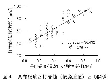 図4 果肉硬度と打音値(伝搬速度)との関係