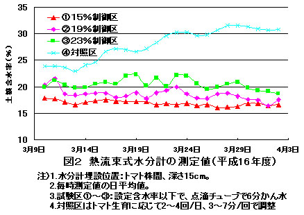 - トマト、土耕栽培、高糖度、熱流束式水分センサー、かん水、自動制御