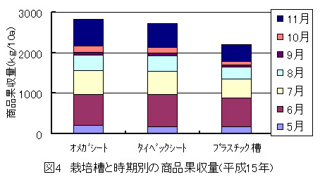 図4 栽培槽と時期別の商品果収量(平成15年)