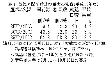 表2 培地温と開花数及び果実の発育(平成15年度)