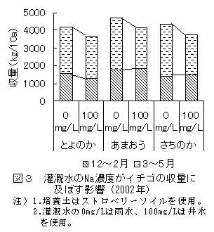図3 灌漑水のNa濃度がイチゴの収量に及ぼす影響(2002年)