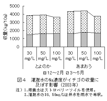 図4 灌漑水のNa濃度がイチゴの収量に及ぼす影響(2003年)