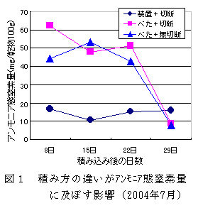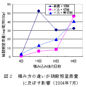 図2 積み方の違いが硝酸態窒素量に及ぼす影響(2004年7月)