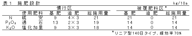 被覆窒素肥料の緩効率50%については、普及センターで実証試験を実施済み。