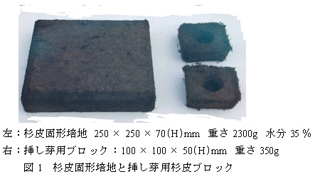 図1 杉皮固形培地と挿し芽用杉皮ブロック