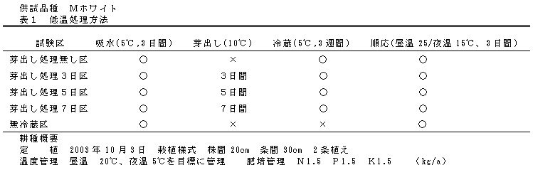 表2 冷蔵処理開始時の芽出し処理日数の違いによる芽への影響