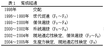 表1 育成経過
