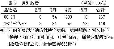 準無霜地帯における収量は「スーパーグリーン」に比べて多い(表2)。