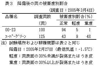 耐寒性は「スーパーグリーン」に比べて強く、降霜時の落花・落蕾・莢の裂傷が少ない(表3)。