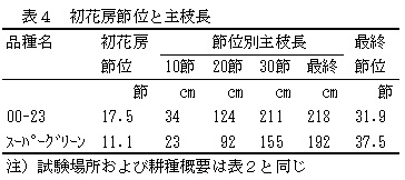 初花房節位は17節程度で、「スーパーグリーン」に比べてやや高い(表4)。