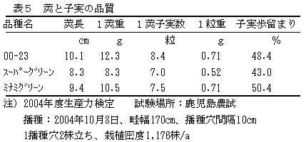 子実の歩留まりは「スーパーグリーン」に比べて高い(表5)。