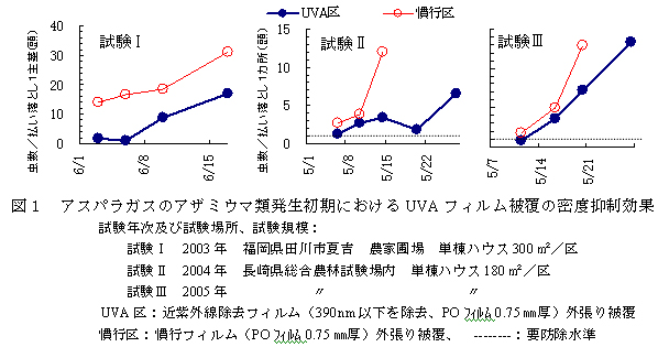 - アスパラガス、近紫外線除去フィルム、アザミウマ類