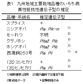 表1 九州地域主要栽培品種のいもち病真性抵抗性遺伝子型の推定