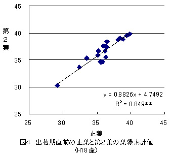 図4 出穂期直前の止葉と第2葉の葉緑素計値