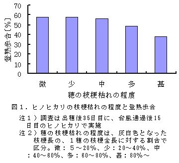 図1 ヒノヒカリの枝梗枯れの程度と登熟歩合