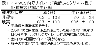 表1 イネWCS内でサイレージ発酵したクサネム種子の種皮の状態と生存率