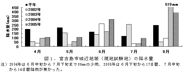 図1 宮古島市城辺地域(現地試験地)の降水量