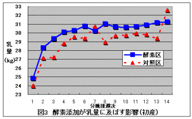 ![]() 図3 酵素添加が乳量に及ぼす影響(初産) |