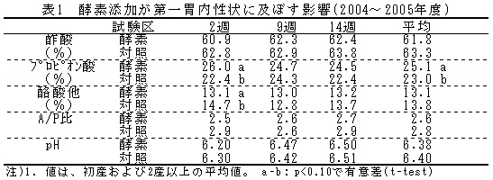 表1 酵素添加が第一胃内性状に及ぼす影響(2004〜2005年度)