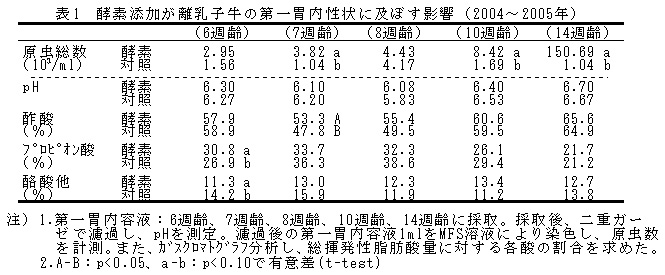 表1 酵素添加が離乳子牛の第一胃内性状に及ぼす影響(2004〜2005年)