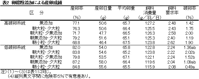 表2 卵殻粉添加による産卵成績