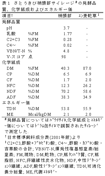 表1 さとうきび梢頭部サイレージ#の発酵品質、化学組成およびエネルギー価
