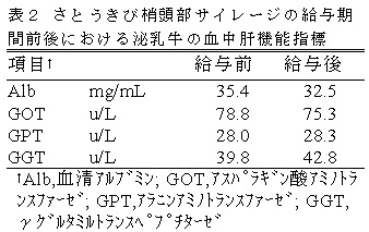 表2 さとうきび梢頭部サイレージの給与期間前後における泌乳牛の血中肝機能指標