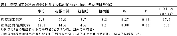 表1 製茶加工残さの成分(ビタミンEはmg/100g、その他は原物%)